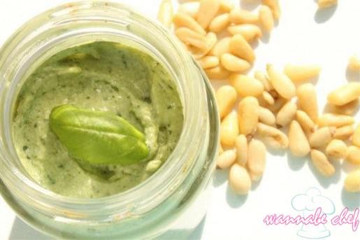 2. A megmosott bazsalikomleveleket beletépkedem a keverőtálba és a megpirított fenyőmaggal, az olívaolajjal, sóval, kis borssal és túróval összeturmixolom. A friss pestot kiszedem a keverőtálból, kisebb edénybe vagy egy kis befőttes üvegbe teszem ami jól zárható, majd a hűtőbe rakom.