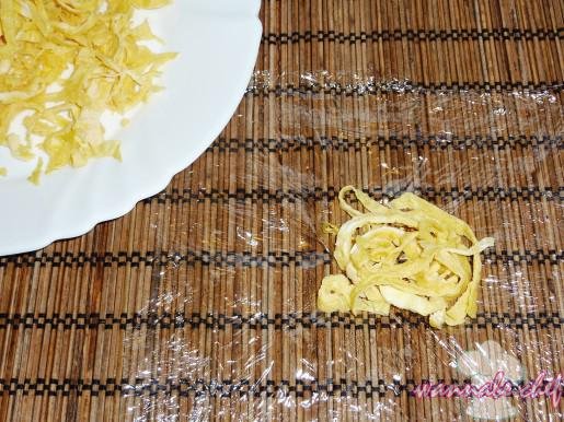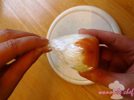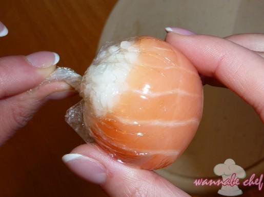 3. Jöhet a formázás. Csak akkor kezdjük el formázni a sushit, ha már a rizs nem meleg!!!!! Készítsünk elő egy kis tálkában hideg vizet (ezzel nedvesítjük majd az ujjunkat, hogy ne ragadjanak a rizsszemek annyira a kezünkhöz) és egy kis darab follpack-ot.