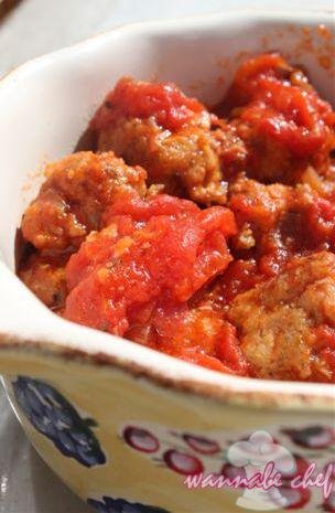 3. Mikor elkészültem a husigolyók pirításával, előkészítem a paradicsomszószt egy tálban: a konzerv paradicsomszószból az egész paradicsomokat villával összenyomkodom, hozzáadom a bort, majd a fűszereket is (bazsalikomot, rozmaringot), cukrot és kevés paradicsomlét, majd ezt a fűszeres szószt ráöntöm a húsgolyókra.