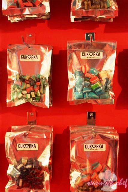 Nyalókát nagyon sokan vesznek. Tradicionális vonalból a párna formájú cukorkát és a kakas nyalókát készítjük. A formája a tradíciókat követi, az íze azonban újító jellegű. Sokan keresik a medvecukrot és a gumicukrot is. Március 15-ére készítettünk kokárda formájú nyalókákat, amik nagyon népszerűek voltak. Nem szoktunk nagy szériákat készíteni, mert mindegyik egyedi, így ezt a vonalat próbáljuk megtartani, erősíteni. Nem törekszünk arra, hogy harmonizáljon a szín az ízzel, sokkal inkább célunk a meghökkentés. Például egy zöld-fehér-barna színű cukorka bármilyen meglepő, puncsos ízű. A nyalóka általában több ízű, két vagy három ízből kreálunk különleges kombinációt.