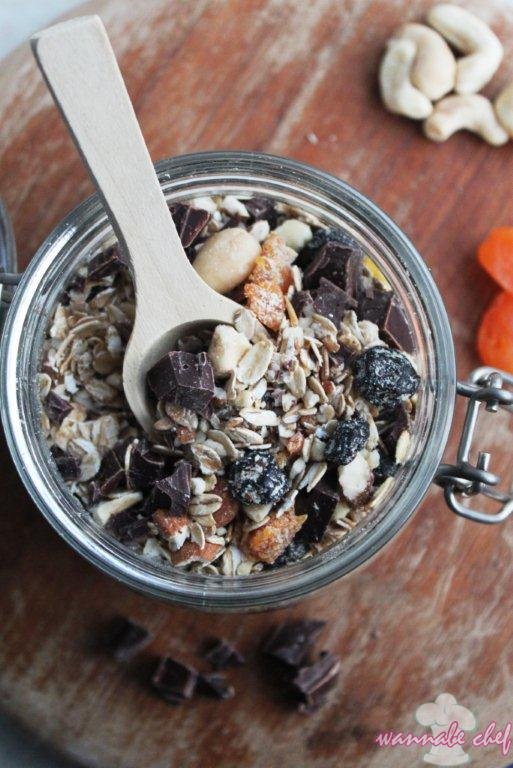 Az egyik legmutatósabb és legkönnyebben elkészíthető reggeli a házi készítésű müzli, amihez még kézügyesség, előképzettség sem kell: egyszerűen össze kell keverni a hozzávalókat, magvakat és szárított gyümölcsöket, beleszórni egy csatos üvegbe és ízlésesen becsomagolni. Ha ajándékba adjuk, érdemes olyan üvegbe szórni, amit később hasznosítani lehet másra is. Hófehér vagy natúr péksüteményes papírzacskóba is csomagolhatjuk a müzlit. (Ha a receptet is csatoljuk az ajándékkal, akkor címkével, vagy a péksüteményes papírra közvetlenül ráírhatjuk az összetevőket.)