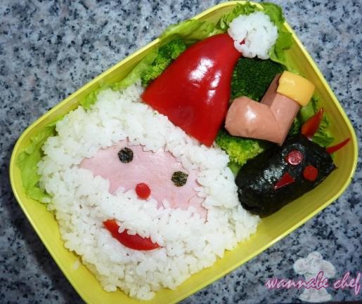 A Mikulásra készülődve tegnap már készítettünk füstölt lazacos “Mikulás” onigiriket, most pedig a holnapi ebédre dobtuk össze ezt a mikulásos bentot. Látjátok, hogy a krampusz is ott van a sarokban?
