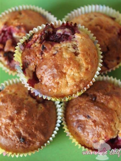 3. Ezután belekeverjük a málnát, majd a masszát a formába kanalazzuk. 170 fokon, fél óra alatt sültek meg a muffinok aranybarnára (mielőtt kivenném a muffinokat, tűpróbát végzek).  A nagyobb muffin formában nekem 18 db közepes nagyságú muffin készült.