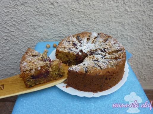 Most csak ketten voltunk és nem is tudtam milyen lesz majd a végkimenetele ennek a szilvás-csokis-mogyorós projektnek, ezért csak egy kis (18 cm átmérőjű) tortaformában készítettem. Az első szelet után, ami a süti 1/4-e volt, már jött is a kérés: “Vágsz még egy kb. ugyan ilyen szeletet?”