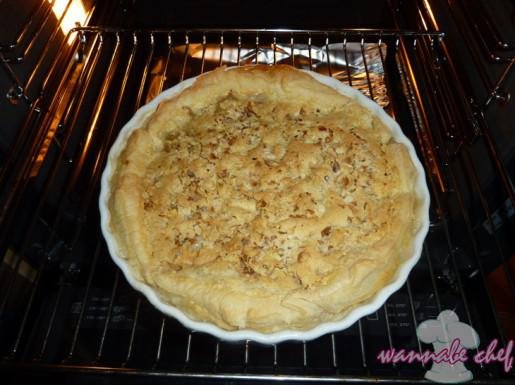 2. Egy tálban összekeverem a cukrot a tejszínnel (a cukor oldódjon teljesen fel.) A leveles tésztát kinyújtom, a pite formába simítom, villával megszúrkálom. A tésztára öntöm a tejszínt, beleszóróm a durvára vágott diót és mogyorót és 1 órán át sütöm.