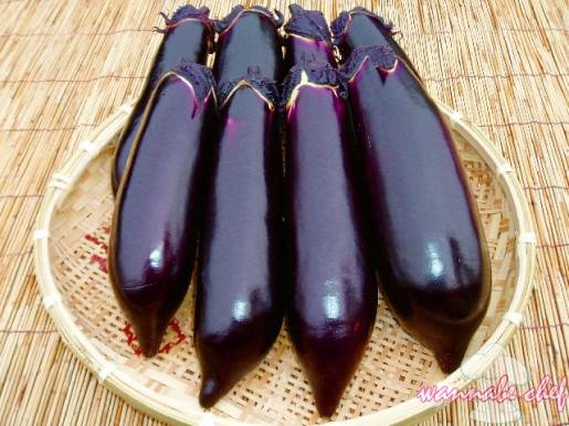 Japánban nem olyan nagy padlizsánokat árulnak, mint nálunk, hanem vékonyabb és hosszabb fajtát, ilyet: