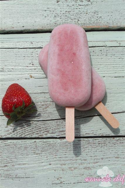 2. Kb. 4 dl mennyiségű pürét kell, hogy kapjak. A hozzávalókat a jégkrémformákba öntöm. Mindegyikbe pálcikát helyezek és mélyhűtőbe teszem kb. 2 órára, amíg megszilárdulnak.