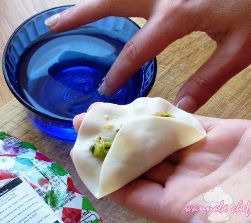 Húzzuk végig a vizes ujjunkat a tésztalap felső felének a szélén!