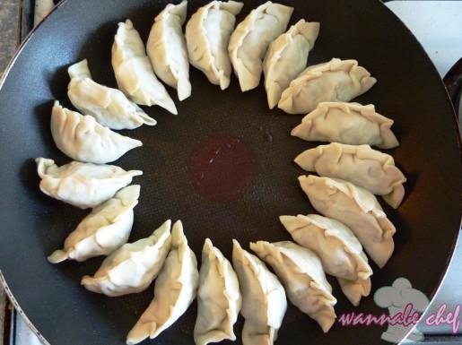 Én azt javaslom, hogy aki teheti, vegye meg a boltban a lapokat, mert akkor pár perc előkészület után már töltheti is a húsos batyukat. Ezt a gyoza variációt serpenyőben sütjük, ez a yaki-gyoza (焼き餃子), vagyis sült gyoza. A töltelék is klasszikus, de más töltelékkel is elkészíthető (nekem is van pár, más töltelék variációm is).